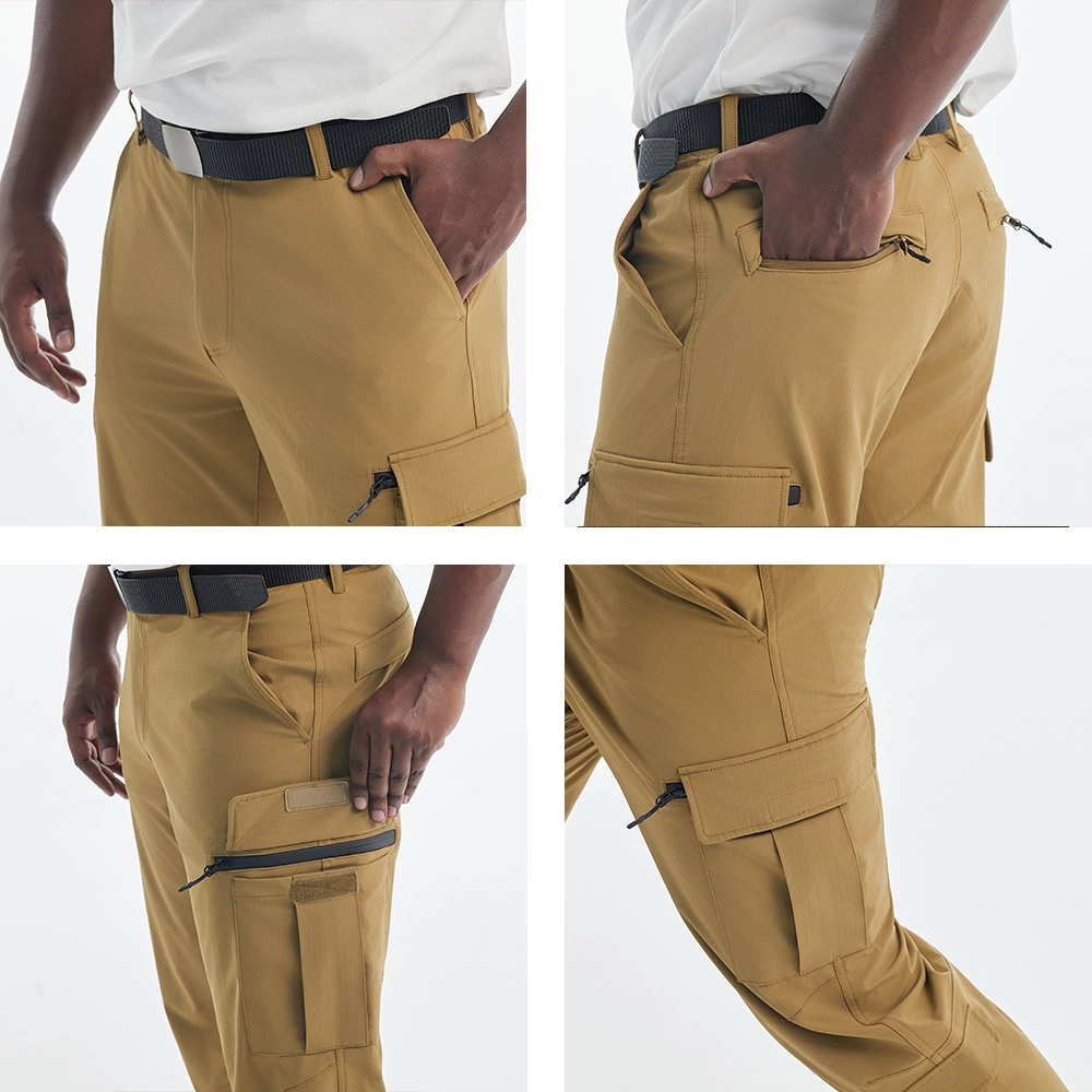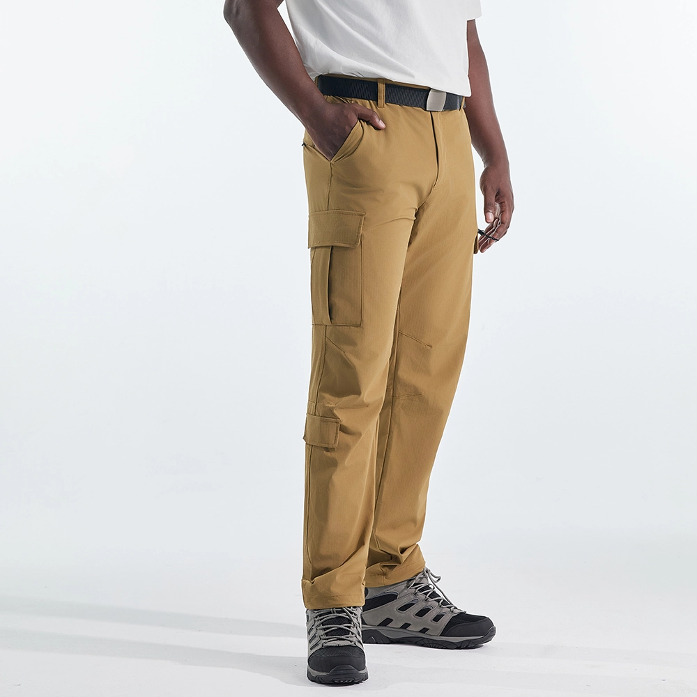 Khaki men’s hiking pants made of lightweight, tear-resistant, and breathable fabric, suitable for trekking, camping, and field work.